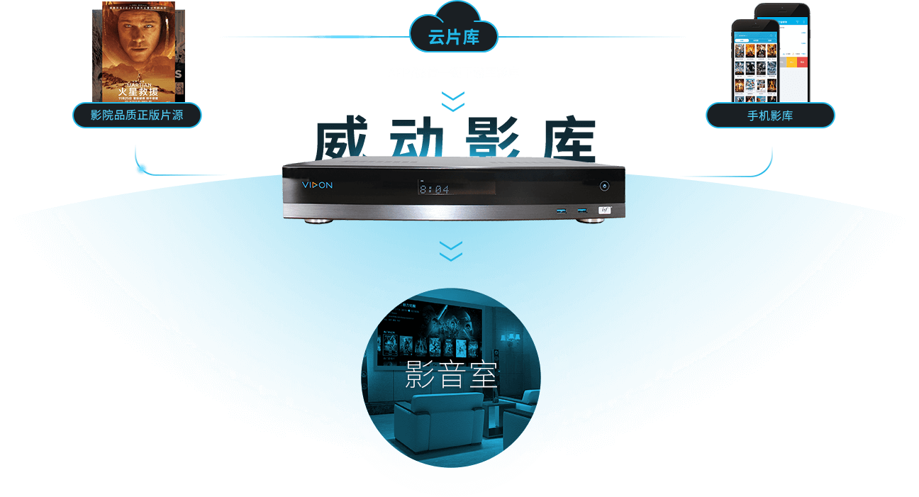 单机独立运行,搭载影院版软件系统,内置双SATA硬盘仓位;